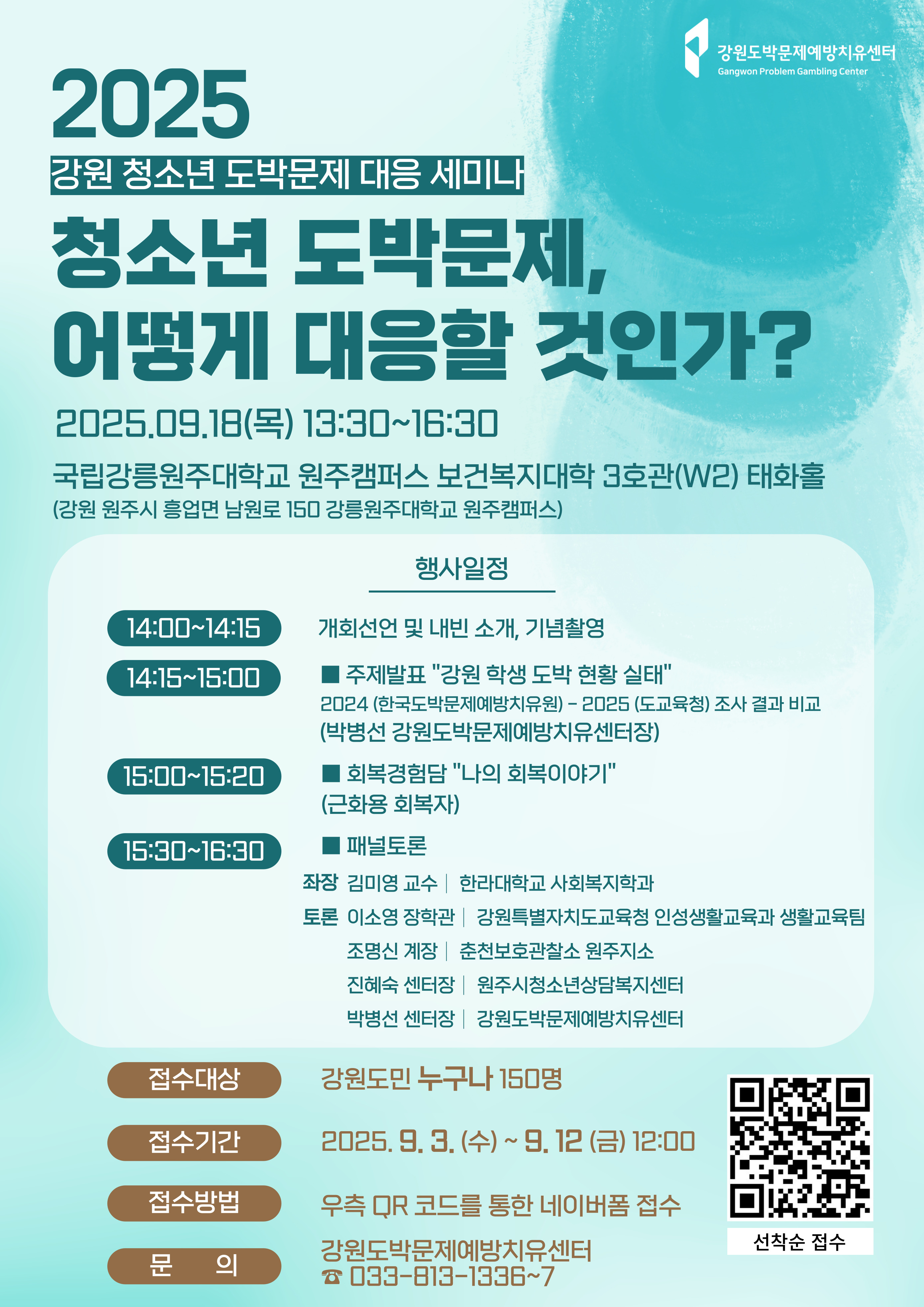 (원주) 「2025 강원 청소년 도박문제 대응 세미나」 개최 안내