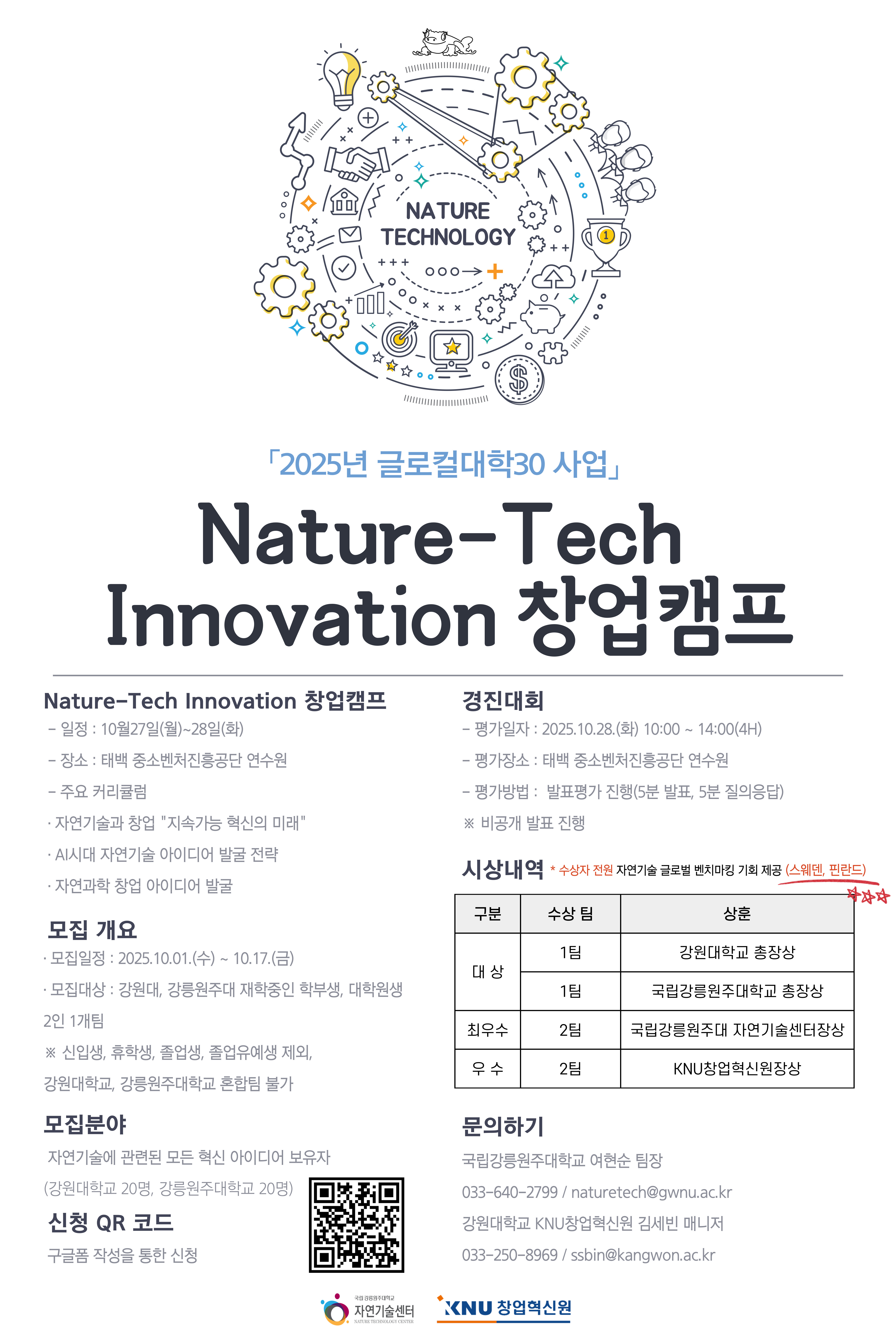 붙임 1. [공고] 2025년 Nature-Tech Innovation 창업캠프 모집 공고문(국립강릉원주대)