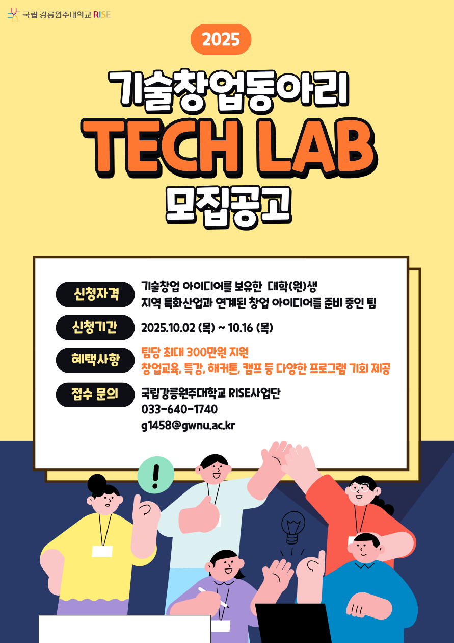 [RISE사업] 2025년도 기술창업동아리(Tech Lab) 모집 안내