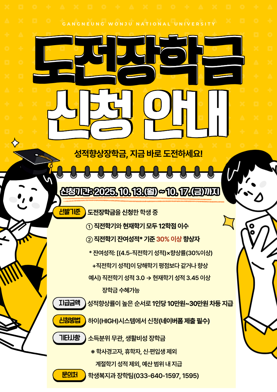 2025학년도 2학기 도전장학금(성적향상장학금) 신청 안내