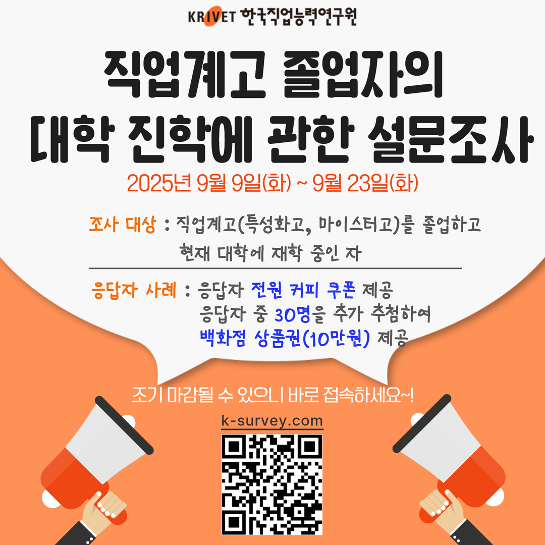 [한국직업능력연구원] 직업계고 졸업자 중 대학 진학자에 대한 설문조사 안내